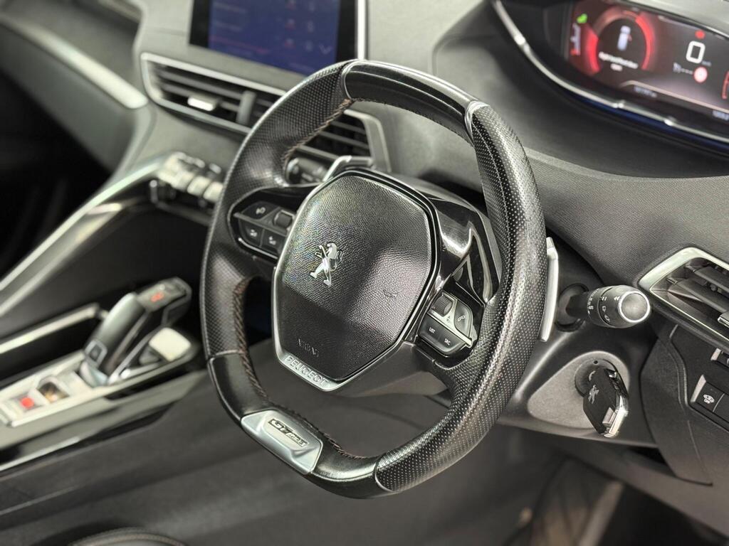 1-3 - 2-3 Folding Rear Seat - Magic Flat Modularity with Controls Accessible From the Boot, 12V Sockets x3 - Dashboard - Rear Cabin and Load Area, 18in Alloy Wheels - Detroit - Diamond Cut, 3D Connected Navigation, 6-Speaker Radio - MP3 Compatible, ABS - Anti-Lock Braking System with REF - Electronic Braking Distribution and AFU - Emergency Braking Assistance, Aikinite Contrast Stitching to Armrest - Gear Lever Gaiter and Dashboard Facia, Air Conditioning - Automatic Dual Zone Climate Control, Airbags - Adaptive Driver and Front Passenger, Airbags - Driver and Front Passenger Side, Airbags - Front and Rear Curtain, Alarm, Automatic Door Locking When Moving Off, Automatic Hazard Light Activation Upon Heavy Brake Application, Blue Ambient Lighting for Connecting Zone, Blue Ambient Lighting to Front Door Panels - Storage - Footwells and Cupholders, Blue Ambient Lighting to Head-Up Instrument Panel, Bluetooth Telephone Facility, Body Protectors in Black, Central Front Armrest with Butterfly-Wing Opening and Illuminated Compartment, Chrome Front Fog Light Trim, DAB Digital Radio, DSC - Dynamic Stability Control and ASR - Electronic Anti-Skid System, Dark Tinted Rear Side and Tailgate Windows, Dashboard - Front and Rear Door Panel Finish - Brumeo Fabric, Dashboard Trim - Satin Chrome, Door Mirror Mounted LED Peugeot Lion Approach Lights, Electric Child Locking Functionality on Rear Windows and Doors, Electric Parking Brake includes Hill Assist, Electric Power Steering with Reach and Rake Adjustable Steering Column, Electronic Code Immobiliser, Exterior Door Handles - Body-Colour, Exterior Temperature Indicator with Ice Warning, Fixing Rings x4 in Load Area, Flocked Front Door Pocket Interior, Flocked Glove Box Interior, Front Bumper Scuff Plate in Lion Grey, Front Central Console with Two Cup-Holders, Front Door Panel Recess Trim - Satin Chrome, Front Interior Light with Reading Spotlights x2 and Rear Interior Light with Timer, Front Optimised Safety Headrests and Rear Retractable Headrests - x3 - Height-Adjustable, Front Three-Point Retractable Seatbelts - Height-Adjustable with Pre-Tensioners and Force Limiters, Front Windscreen Wiper with Magic Wash Cleaning System, Front Wing Trim - Black with Chrome Detail, Front and Rear Parking Sensors, Full LED Headlights, GT Line Emblems in Satin Copper - Front Wings and Tailgate, Gear Lever - Satin Chrome, Gear Shift Indicator, Gloss Black B and C Pillar and Aerodynamic Deflector Trim, Gloss Black Rear Cluster Connecting Strip, Gloss Black Windscreen Trim, Grab Handles x4 - Retractable - Damped, Headlights Left On Audible Warning, Heated Rear Windscreen with Integrated Antenna, ISOFIX Child Seat Fittings - x3 - In the Front Passenger and Outer Rear Seats, Illuminated Glove Box, Illuminated Vanity Mirrors, Interior Door Handles - Satin Chrome, LED Daytime Running Lights Built into the Headlight Unit, LED Foglamps including Static Cornering Function, LED Interior Lighting - Roof - Storage Spaces - Load Area, LED Sequential Scrolling Front Indicators, LED Side Indicator Lights Integrated into Door Mirrors, Lane Departure Warning System, Map Pockets on Front Seat Backs, Mechanical Height-Adjustable Drivers Seat, Mirror Screen, Mistral Black Floor Mats with Aikinite Contrast Stitching, Mistral Full-Grain Perforated Leather Steering Wheel with Aikinite Stitch Detail and Satin Chrome GT Line Emblem, Multifunction Trip Computer, One-Touch Electric Front and Rear Windows with Pinch Protection, Peugeot Connect SOS and Assistance, Peugeot i-Cockpit, Peugeot i-Cockpit Amplify, Power Folding Door Mirrors - Includes LED Courtesy Approach Lights, Programmable Cruise Control and Speed Limiter, Radiator Grille - Chrome Edge Trim with Chequered Design and Black Peugeot Lettering, Reading Spotlights x2 in Rear, Rear Armrest with Ski Flap and Two Cup Holders, Rear Bumper Facia - Chrome, Rear Centre Console Ventilation System, Rear Coat Hooks x2, Rear LED Peugeot Signature Claw Effect Lights - With Daylight Function, Rear Number Plate Lights x2, Rear Spoiler - Body Colour with Stainless Steel Edging Trim, Rear Three-Point Retractable Seatbelts x3 - with Pre-Tensioners and Force Limiters in the Outer Rear Seats, Rear Windscreen Wiper Triggered Automatically in Reverse Gear, Remote Control Central Locking, Roof - Black Diamond, Roof Lining - Mistral Black, Safety Pack, Safety Plus Pack, Satin Chrome Digital Instrument Panel and Touch Screen Trim, Scorpions Tail and Toggle Switch Trim - Satin Chrome, Seatbelt Unfastened on the Move Audible and Visual Alert for Front and Rear Seats, Seatbelt not Fastened Audible and Visual Alert for Front Seats, Seating - Driver Seat Lumbar Adjustment, Seating - Driver Seat Manual Adjustment - Longitudinal and Back Rest Angle, Seating - Driver and Front Passenger Seat Height Adjustment, Seating - Front Passenger Seat - Flat Folding with Picnic Table, Seating - Front Passenger Seat Manual Adjustment - Longitudinal and Back Rest Angle, Self Levelling Headlights, Side Window Trim - Chrome, Smartphone Charging Plate, Speed Limit Recognition and Recommendation, Sport Button, Sports Front Bumper Design, Stainless Steel Door Sill Scuff Plates, Stainless Steel Roof Arch Trim, Steel Space Saver Spare Wheel, Twin Exhaust Effect Trim, Two-Position Boot Floor, USB Socket, Visibility Pack, Visio Park 1 - 180 Degree Colour Reversing Camera and Front Parking Sensors, Voice Recognition - Radio-Navigation-Telephony Features